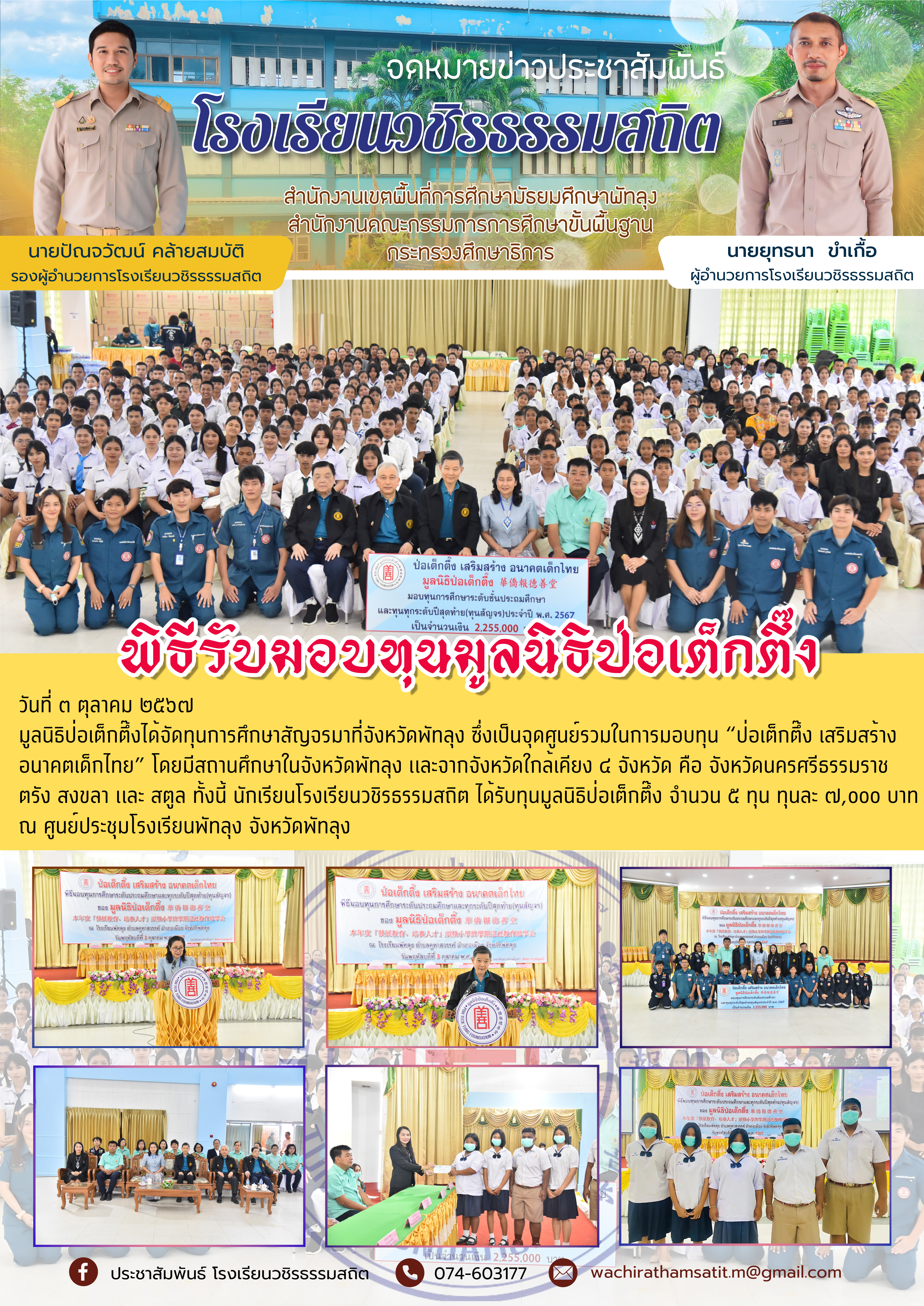 พิธีรับมอบทุนมูลนิธิป่อเต็กตึ๊ง
