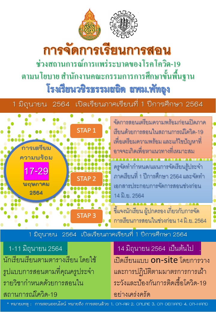 การจัดการเรียนการสอนก่อนเปิดภาคเรียนที่ 1 ปีการศึกษา 2564 ตามมาตรฐการ สพฐ.