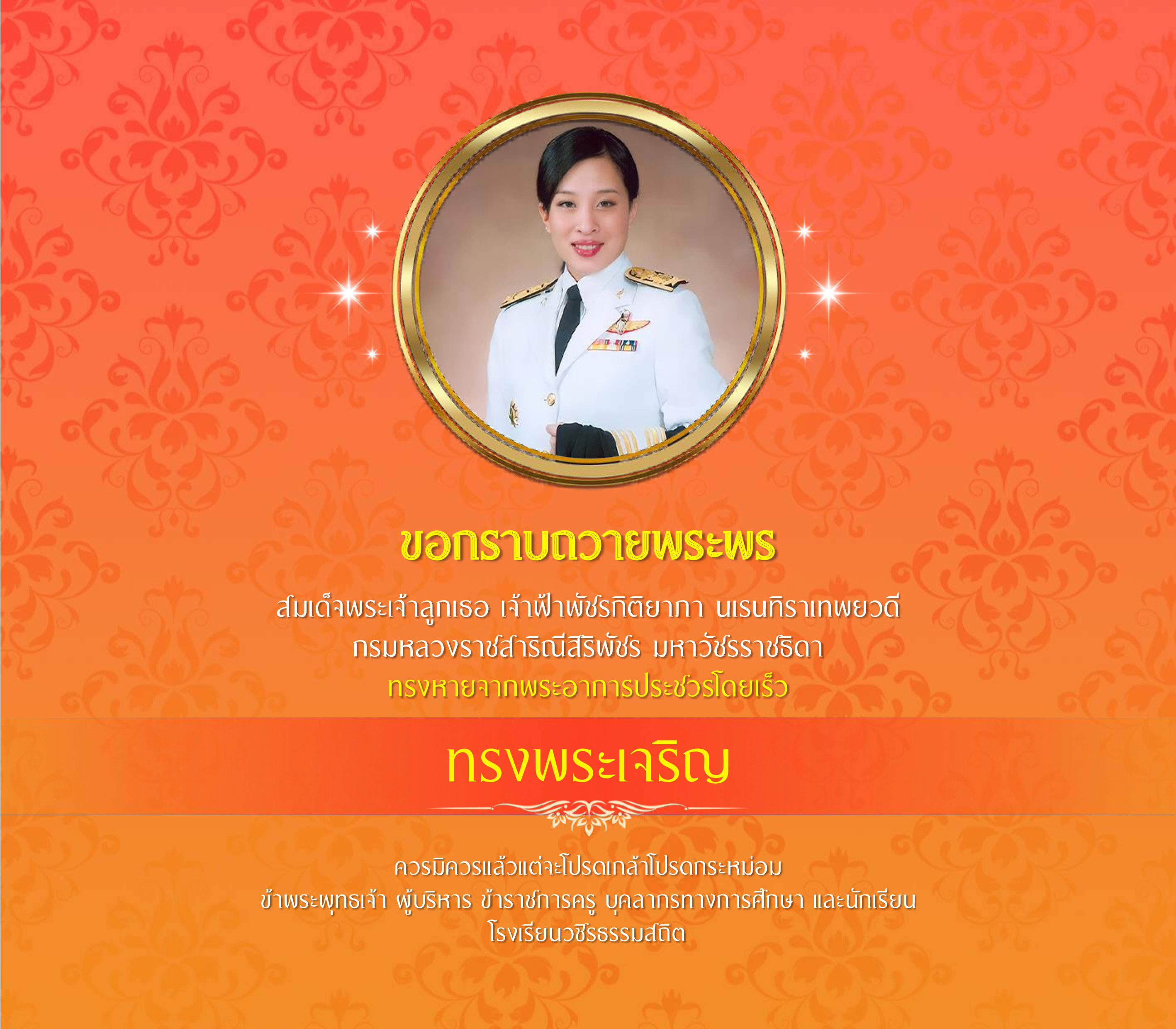 ขอกราบถวายพระพร สมเด็จพระเจ้าลูกเธอ เจ้าฟ้าพัชรกิติยาภา นเรนทิราเทพยวดี กรมหลวงราชสาริณีสิริพัชร มหาวัชรราชธิดา
